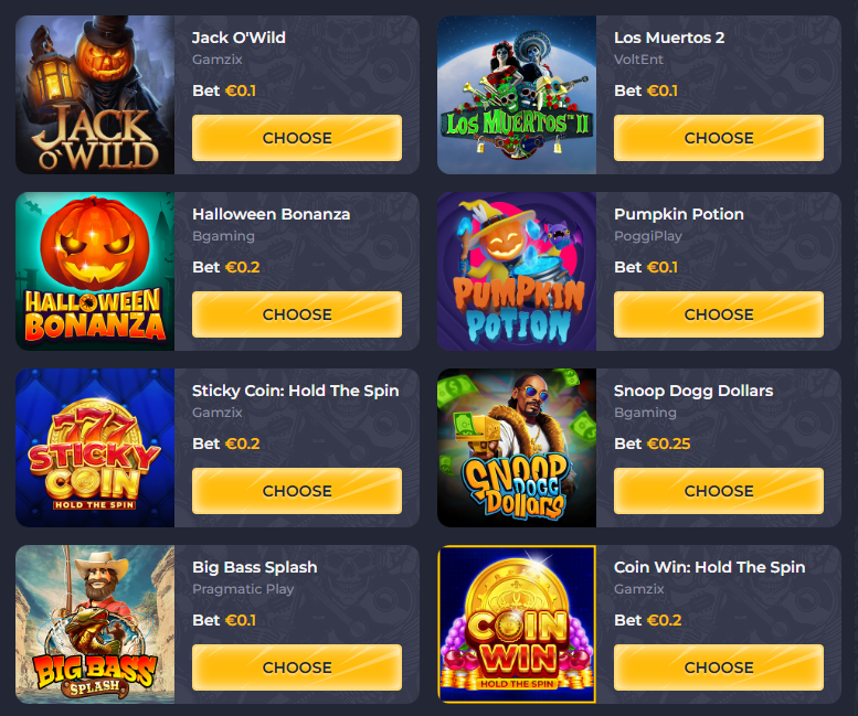 Die Erfolge reichen vom Erreichen bestimmter Gewinnmultiplikatoren bis zum Ausprobieren neuer Slot-Kategorien. Für jedes erreichte Ziel gibt es Treuepunkte oder Freispiele. Diese Funktion verleiht dem regulären Spiel mehr Tiefe und ermöglicht es Ihnen, Ihren Fortschritt im Laufe der Zeit zu verfolgen.